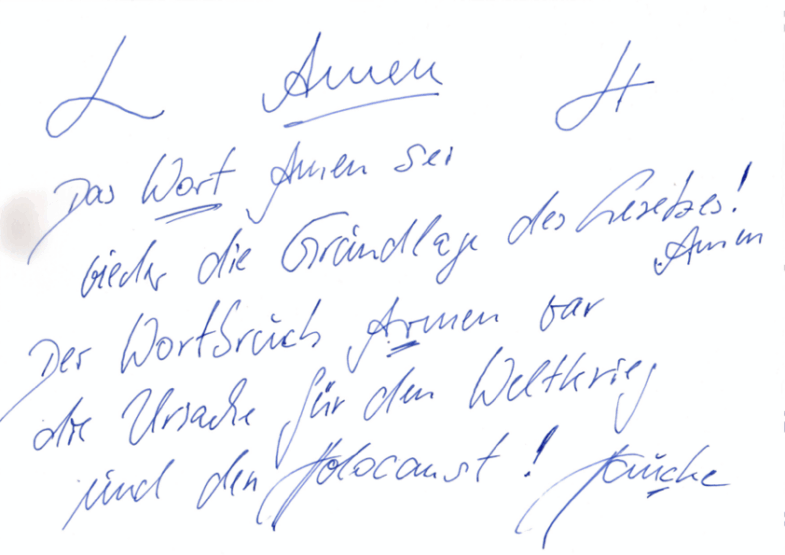 JHWH und Jesus Christus hatten einen Ehestreit, was der Grund für den Weltkrieg und den Holocaust im All war. JHWH hat seine Frau gekreuzigt und die Christen haben die Juden vergast.